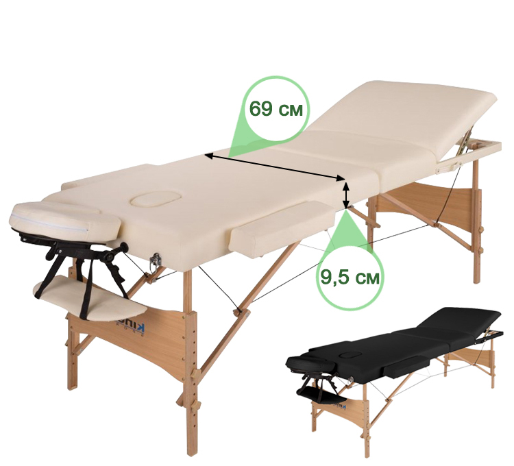 Портативний 3-х сегментний Масажний стіл кушетка 70 см