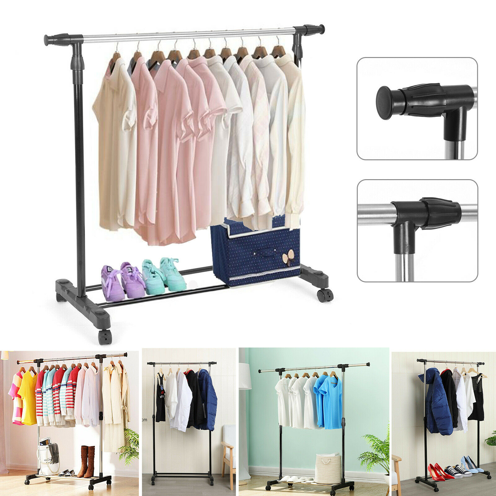Підлогова телескопічна вішалка Стійка для одягу на коліщатках