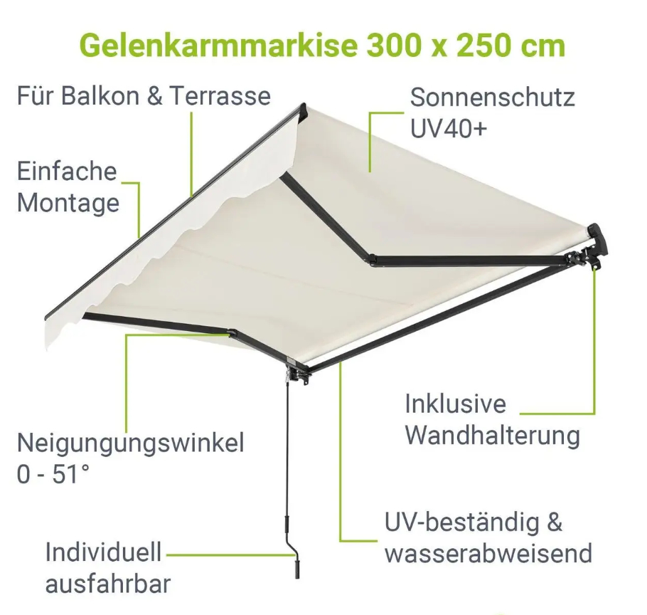 Відкідний настінний маркіз 300х250 см бежевий НімеччинаВідкідний настінний маркіз 300х250 см бежевий Німеччина