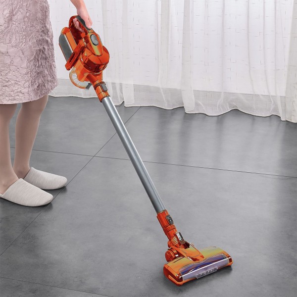 Практичний акумуляторний пилосос 2-в-1 VAC100 Pro (помаранчевий) з настінним кронштейном, зарядною станцією та світлодіодною насадкою для підлоги – ідеальний пристрій для прибирання будинку.