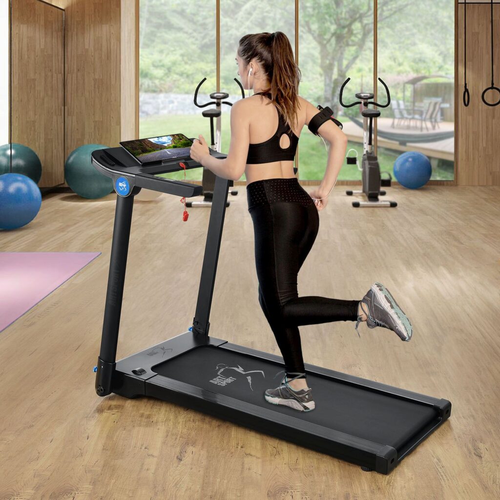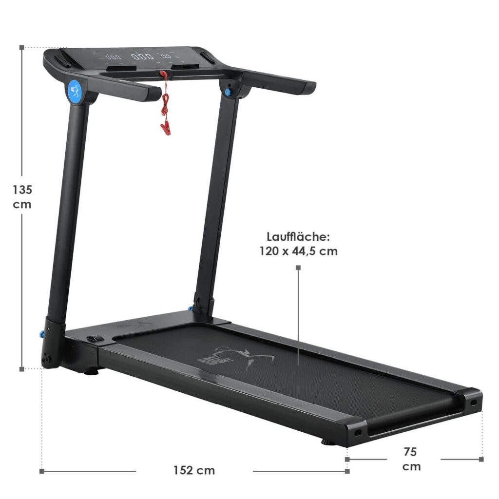 Бігова поверхня розміром 120×45 см пропонує достатньо місця для ходьби, ходьби або бігу. Пристрій може бути завантажений до 110 кг. Тренажер також дуже компактний та забезпечує чудовий комфорт при бігу. Нековзна поверхня забезпечує надійне захоплення під час бігу.
