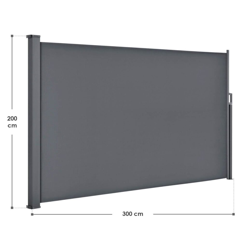Оскільки бічна маркіза згортається в касету, ви можете просто розтягнути тканину до потрібної довжини. Це дає вам можливість налаштувати тент відповідно до ваших потреб, щоб захистити свій внутрішній дворик або сад від сонця та вітру. Загалом сучасна перегородка має висоту 2 м та максимальну довжину 3 м.