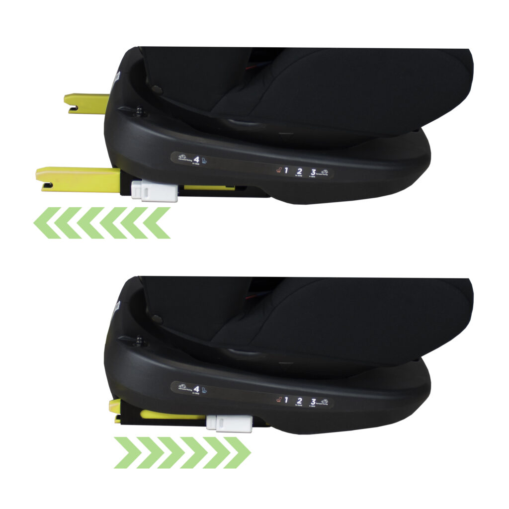 Кут нахилу сидіння можна регулювати відповідно до потреб та комфорту. Як тільки дитяче крісло встановлено в положення “спинкою вперед”, похилий стан можна встановити тільки обличчям назад. Положення лежачи вперед неможливо.