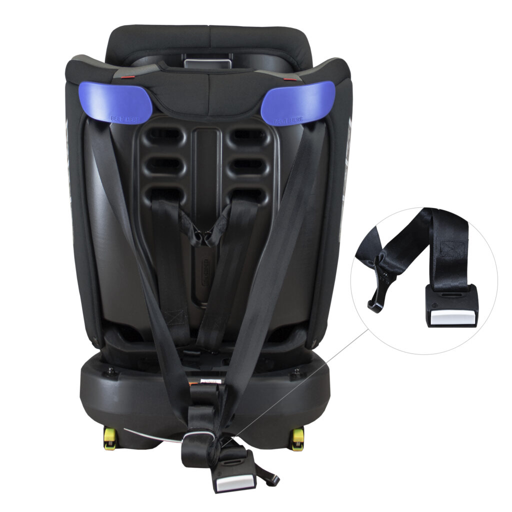 5-точковий ремінь можна зняти, якщо дитина занадто велика. Тоді можна буде пристебнутись за допомогою звичайного автомобільного ременя безпеки. Спеціальні напрямні для ременя забезпечують надійну фіксацію.