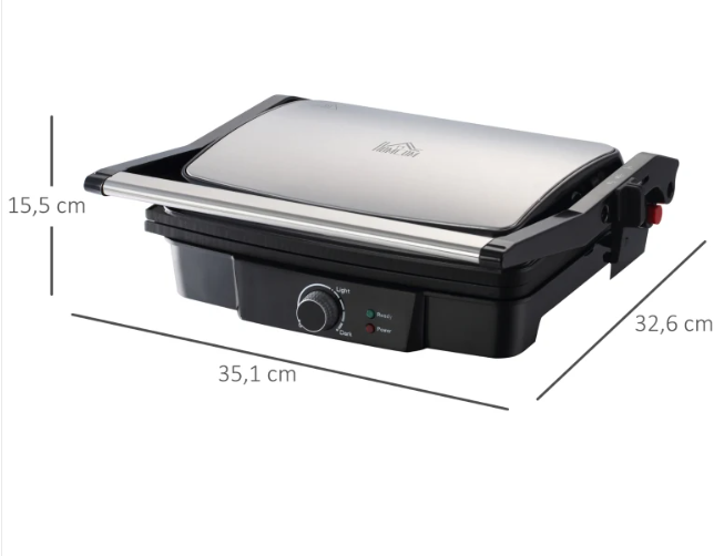 Бажаєте приготувати смачну їжу для своєї сім’ї швидко і особливо легко? Тоді чому б не спробувати цей електричний гриль від HOMCOM! Ви можете використовувати його як сендвічницю або як плоский гриль завдяки дизайну з двома пластинами, що відкидається на 180°. Крім того, пластини гриля є антипригарними та легко чистяться, а також оснащені піддоном для збору крапель, щоб зробити приготування їжі не тільки смачним, але й кориснішим.