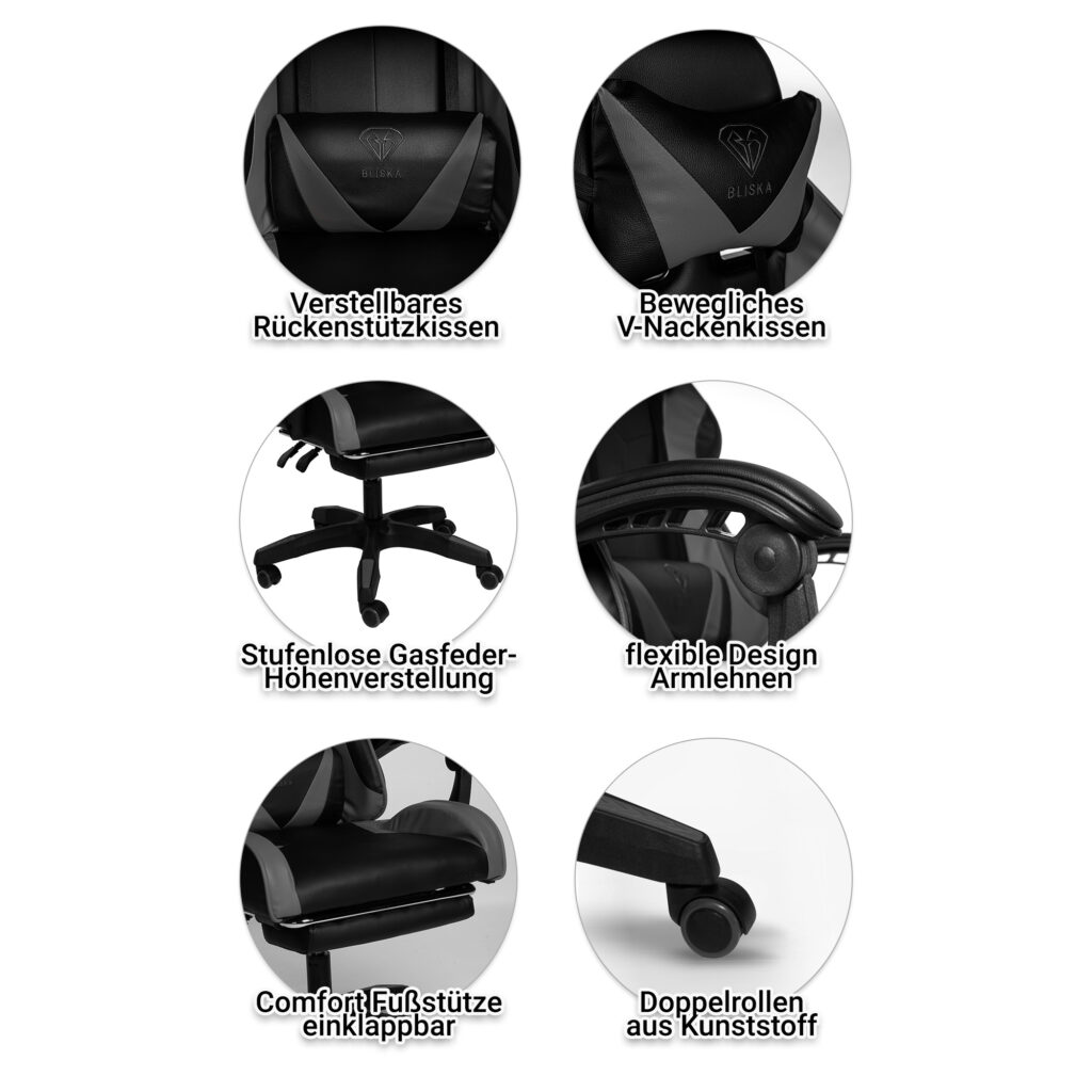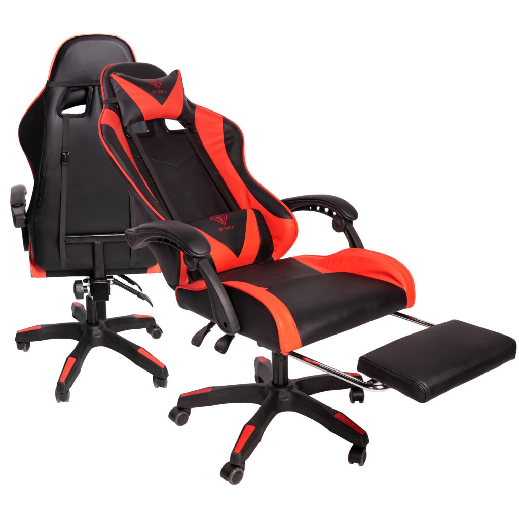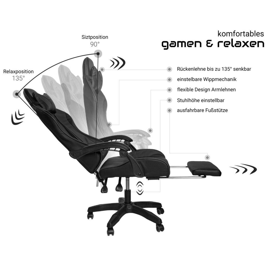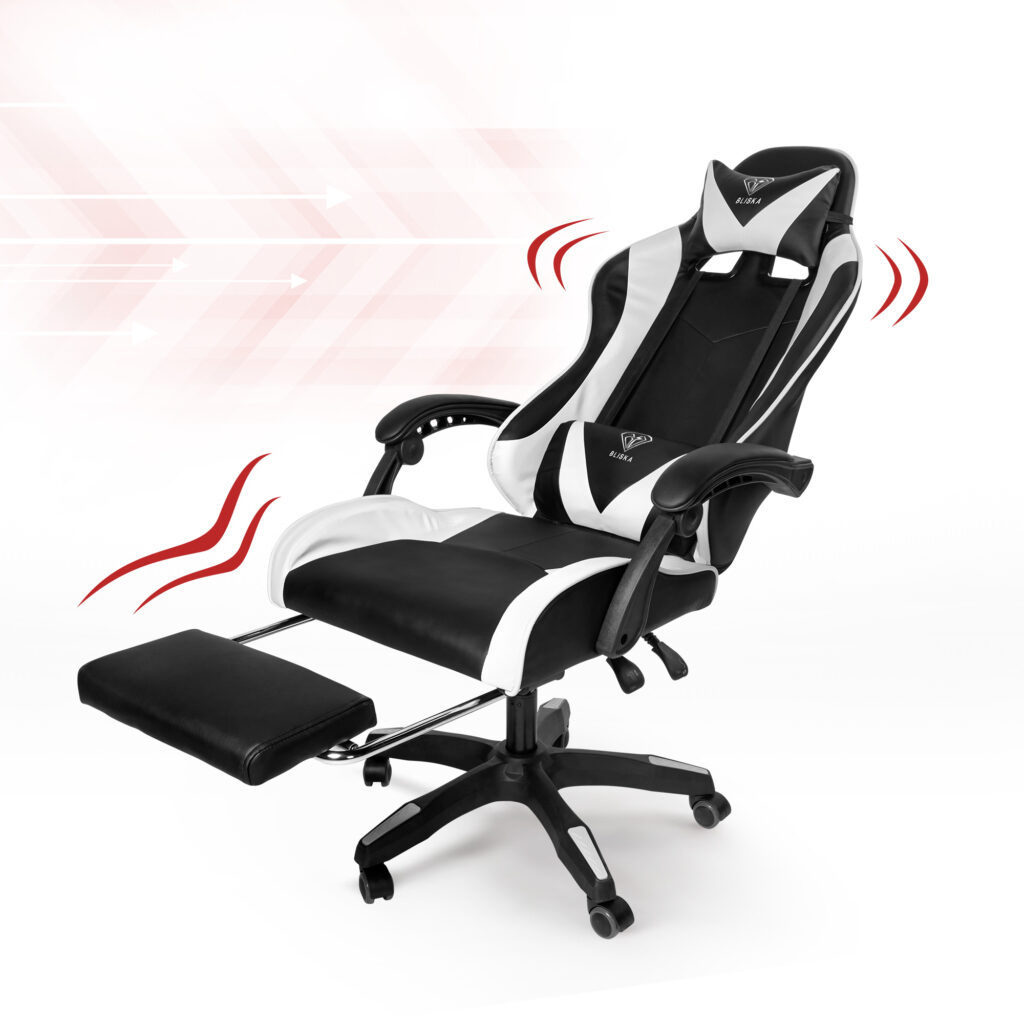 Це крісло, що обертається в спортивному дизайні, зі шкіряною обробкою підходить як як ігрове, так і як зручне крісло для домашнього офісу. Це офісне крісло має гнучкі підлокітники незвичайного дизайну. Спинку крісла можна плавно регулювати. Вбудована висувна підставка для ніг забезпечує найзручніше положення для розслаблення. Зручне крісло, що обертається, можна регулювати по висоті, а так само можна регулювати нахил спинки.