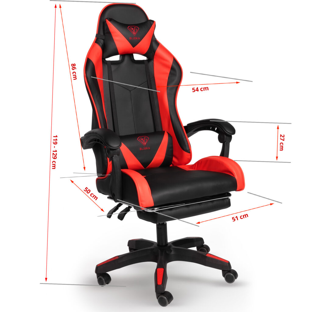 Габарити 84 × 32 × 64,5 см Це крісло, що обертається в спортивному дизайні, зі шкіряною обробкою підходить як в якості ігрового, так і в якості зручного крісла для домашнього офісу. Це офісне крісло має гнучкі підлокітники незвичайного дизайну. Спинку крісла можна плавно регулювати. Вбудована висувна підставка для ніг забезпечує найзручніше положення для розслаблення. Зручне крісло, що обертається, можна регулювати по висоті, а так само можна регулювати нахил спинки.