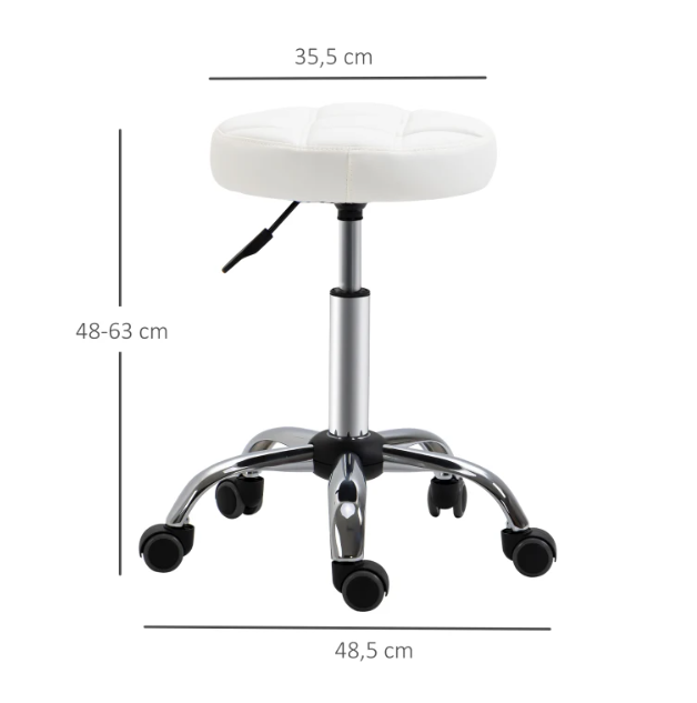 Салонний табурет від HOMCOM регулюється на потрібну висоту для створення ідеального робочого місця. М’яке сидіння забезпечує комфорт навіть протягом тривалого сидіння. Чохол зі штучної шкіри простий у догляді. І ви можете регулювати висоту сидіння відповідно до ваших потреб, що дуже зручно. 5 коліщаток і сидіння, що обертається, дозволяють легко ковзати в робочому просторі.