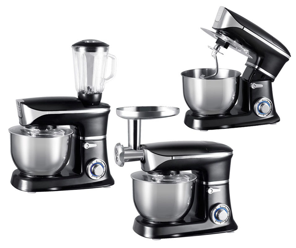 У комплекті ― стандартний набір насадок для м’ясорубки, гак для замісу, насадка для збивання та безпосереднього замісу тіста. Потужність комбайна – 1900 Вт. 6 режимів роботи, плюс режим пульсації та плавне регулювання. Кухонний комбайн працюємо порівняно тихо. У комплекті є прозорий захист від бризок, об’єм чаші блендера 1,5 л, є міркова шкала, об’єм чаші для замісу – 6,5 л. М’ясорубку та блендер легко встановлювати. Комбайн швидко розуміється. В основі є присоски, які не допускають ковзання комбайна по будь-якій поверхні.