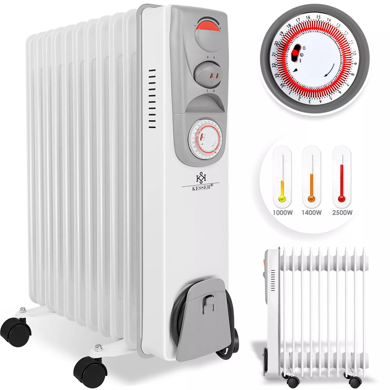 Масляний електричний обігрівач з таймером KESSER 2500 Вт 11 відділів 2500W Німеччина