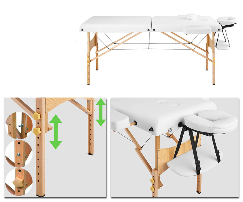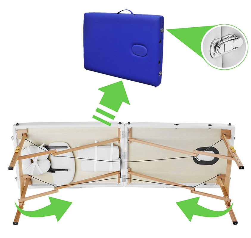 Ця модель ідеально підійде як для роботи в умовах салону, так і для особистого масажного кабінету, а її невелика вага, зручність складання та транспортування дозволять використовувати стіл навіть тим, хто працює на виїзді. Дві секції столу легко складаються і набувають форми валізи, яку зручно переносити.