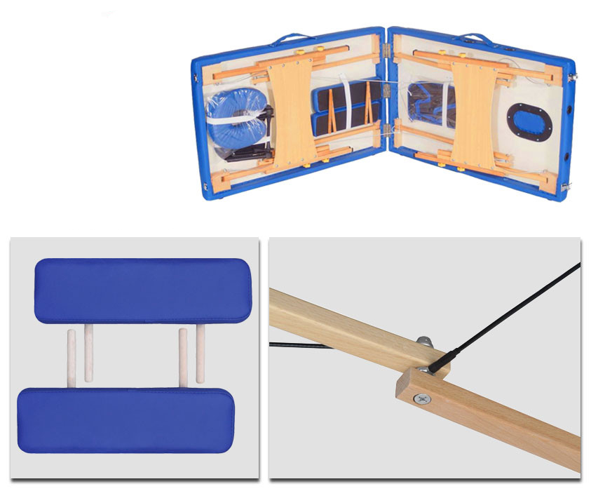 Каркас столу дуже міцний, виготовлений із твердих порід бука та покритий захисним лаком. Додаткову стійкість конструкції надає розтяжка із металевих тросів. Незважаючи на свою невелику вагу, дана модель дуже міцна і витримує динамічне навантаження до 250 кг, що дозволяє майстру інтенсивно працювати з пацієнтами з великою вагою. Завдяки регулятору висти стіл підлаштовується під індивідуальні параметри та потреби майстра.