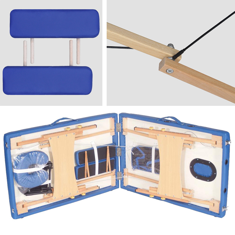 Каркас столу дуже міцний, виготовлений із твердих порід бука та покритий захисним лаком. Додаткову стійкість конструкції надає розтяжка із металевих тросів. Незважаючи на свою невелику вагу, дана модель дуже міцна і витримує динамічне навантаження до 250 кг, що дозволяє майстру інтенсивно працювати з пацієнтами з великою вагою. Завдяки регулятору висти стіл підлаштовується під індивідуальні параметри та потреби майстра.