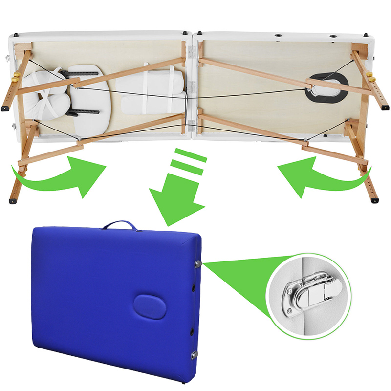 Ця модель ідеально підійде як для роботи в умовах салону, так і для особистого масажного кабінету, а її невелика вага, зручність складання та транспортування дозволять використовувати стіл навіть тим, хто працює на виїзді. Дві секції столу легко складаються і набувають форми валізи, яку зручно переносити.