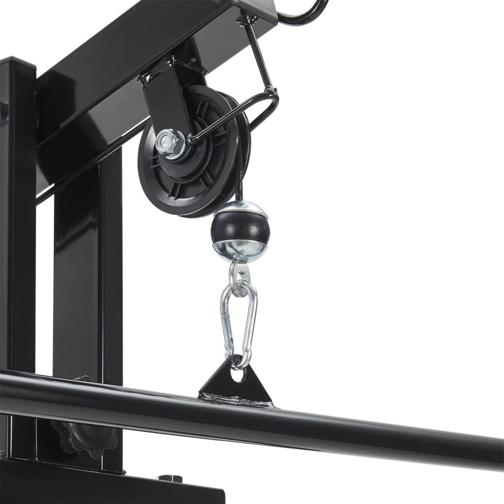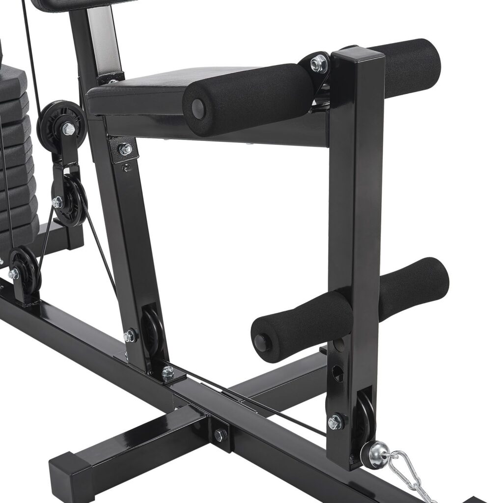 Безпека насамперед! Це забезпечується прогумованими покриттями на вагових стрижнях. Це забезпечує нековзну та надійну фіксацію при виконанні окремих вправ. Крім того, пластикові ніжки мультистанції забезпечують додаткову стійкість навіть під час інтенсивних тренувань.