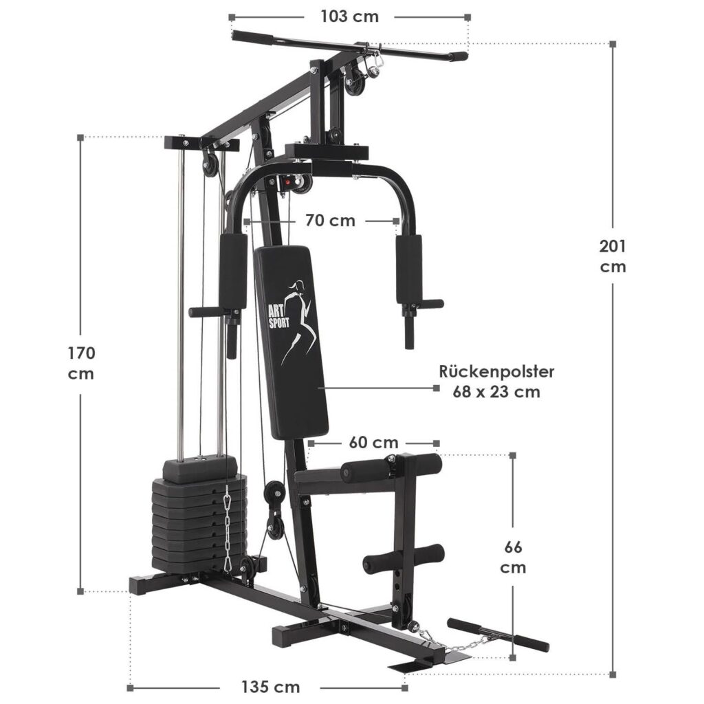 Ваш особистий домашній фітнес-зал: мультитренажер ArtSport ProfiGym 2000. З цим мультитренажером ви ефективно тренуєте все тіло – він ідеально підходить для інтенсивних домашніх тренувань. Удосконалений домашній тренажер надзвичайно компактний і поєднує кілька варіантів спортивного інвентарю. Продовжуйте свій план тренувань у чотирьох стінах: підвищуйте рельєфність м’язів за допомогою різноманітних фітнес-вправ для верхньої та нижньої частин тіла. Легко регулюйте інтенсивність у міру просування, використовуючи вагові пластини. Таким чином, тренажер ідеально підходить як для жінок, так і для чоловіків.