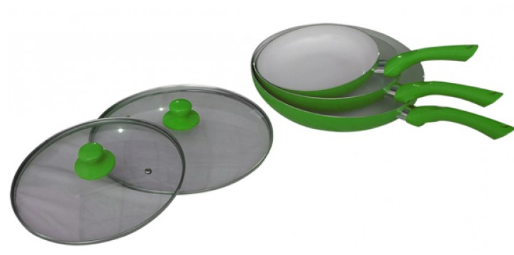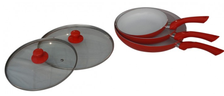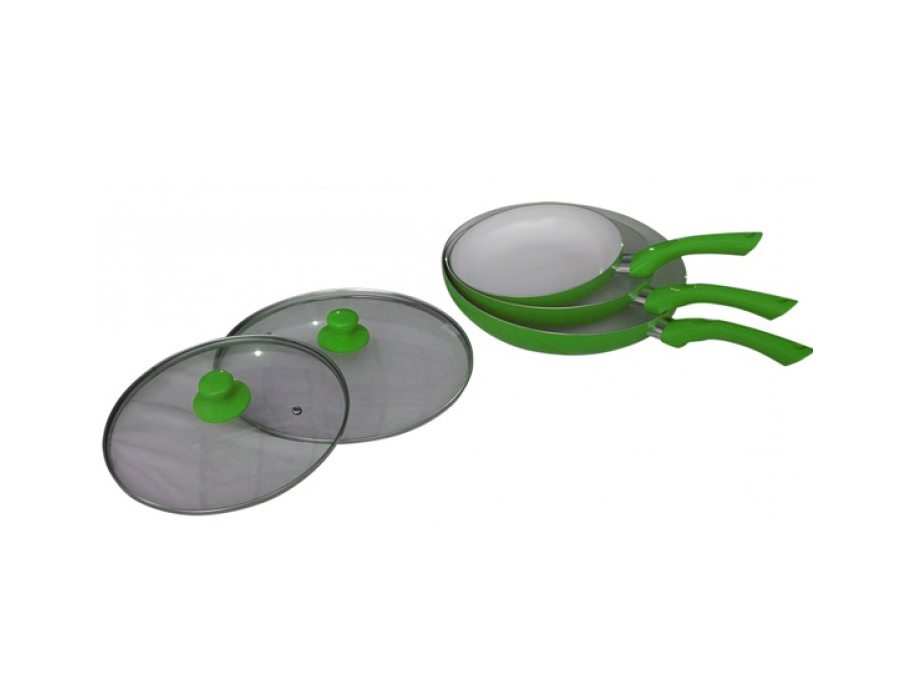 5 шт комплект, що складається з 3 сковорідок і 2 скляних кришок