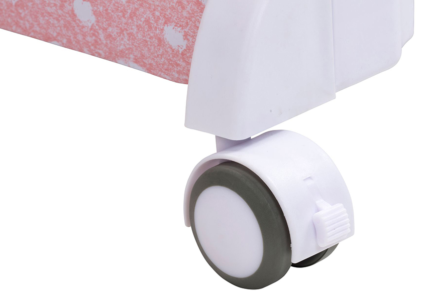 – це стабільна конструкція оснащена чотирма маленькими коліщатками з фіксаторами, завдяки чому забезпечується мобільність столика. Під час експлуатації столика та ванни за призначенням слід обов’язково зафіксувати коліщатка, щоб забезпечити безпеку дитини;