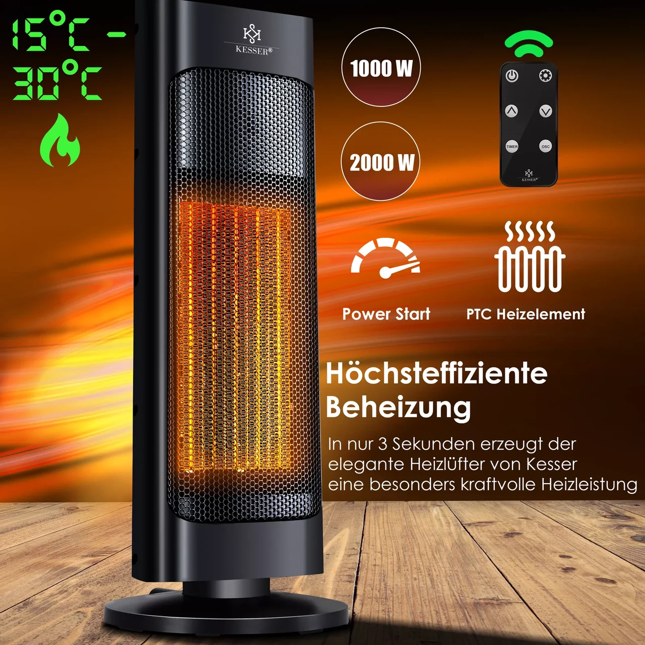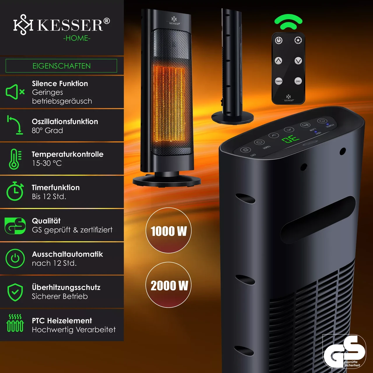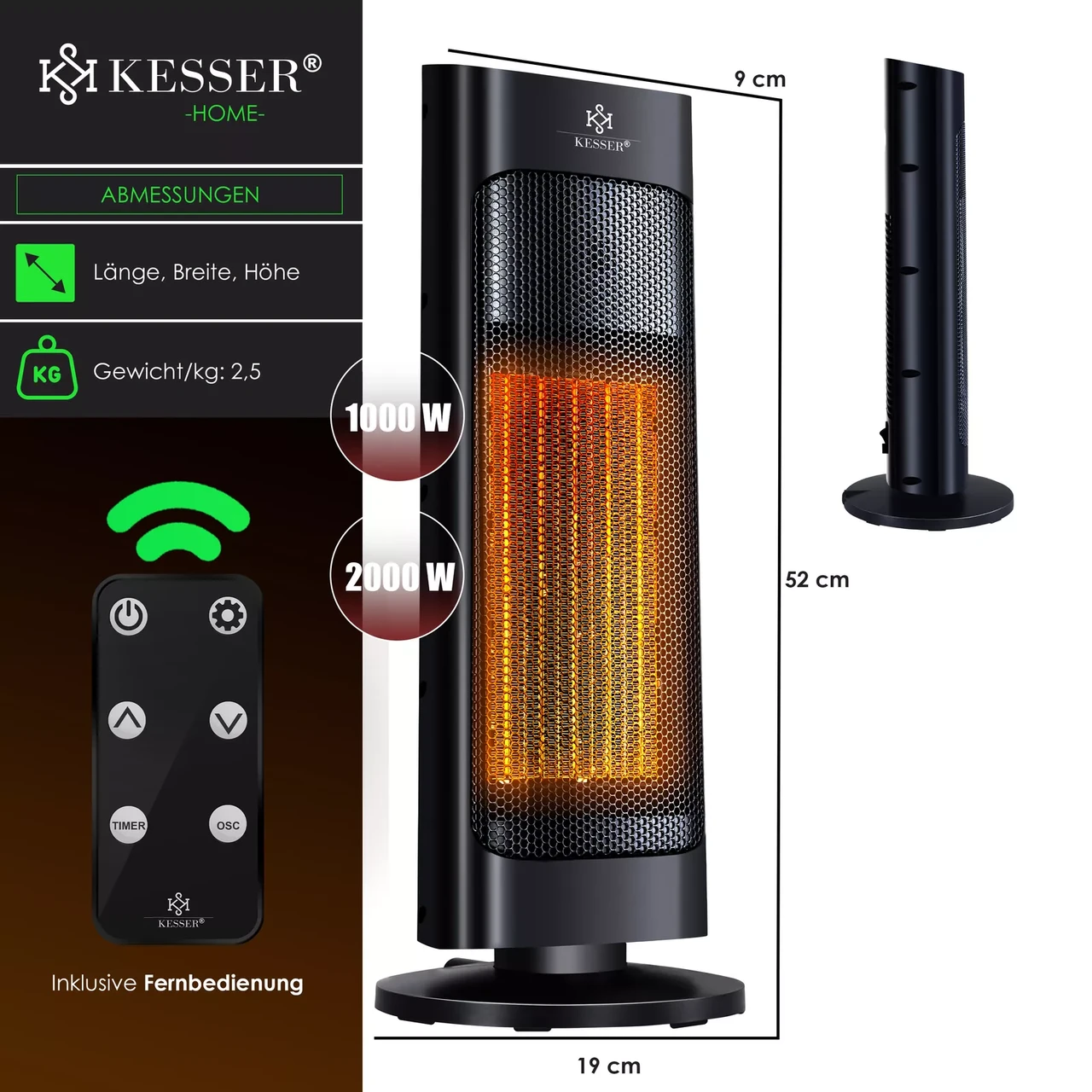 “Побутові тепловентилятори KESSER Тепловентилятор 2000 Вт Керамічний обігрівач (обігрівач для дому)”