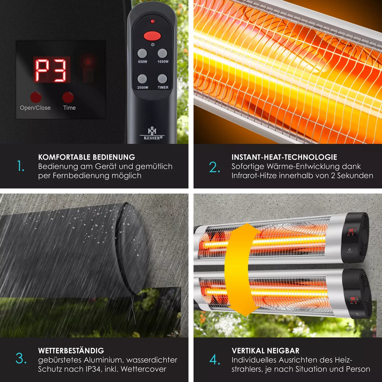 Інфрачервоний обігрівач KESSER Обігрівач на стіну 2500 Вт Обігрівач для дому 90x870x190 мм