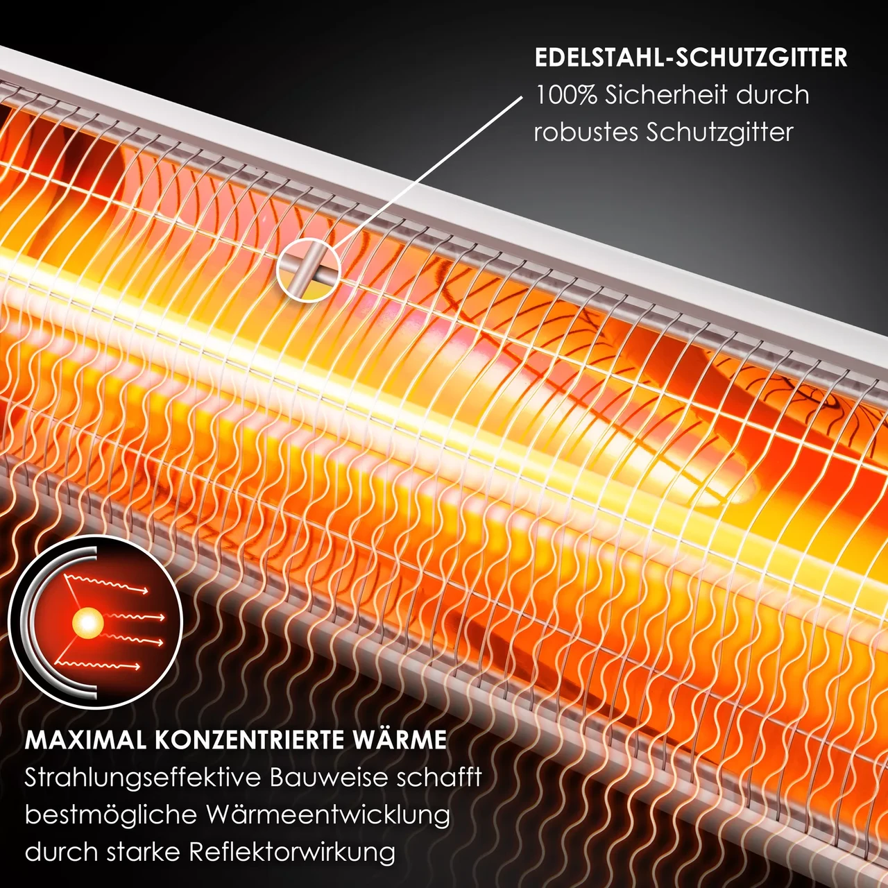 Цей потужний інфрачервоний обігрівач із настінним кріпленням забезпечує миттєве та приємне тепло всього за 2 секунди. Ідеально підходить для використання як у приміщенні, так і на відкритому повітрі — у саду, на терасі, балконі, майстерні або навіть у закладах громадського харчування.
