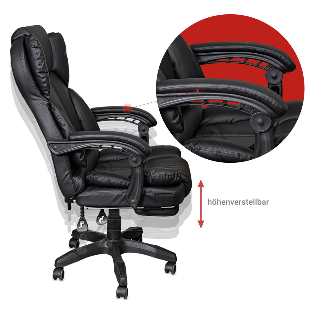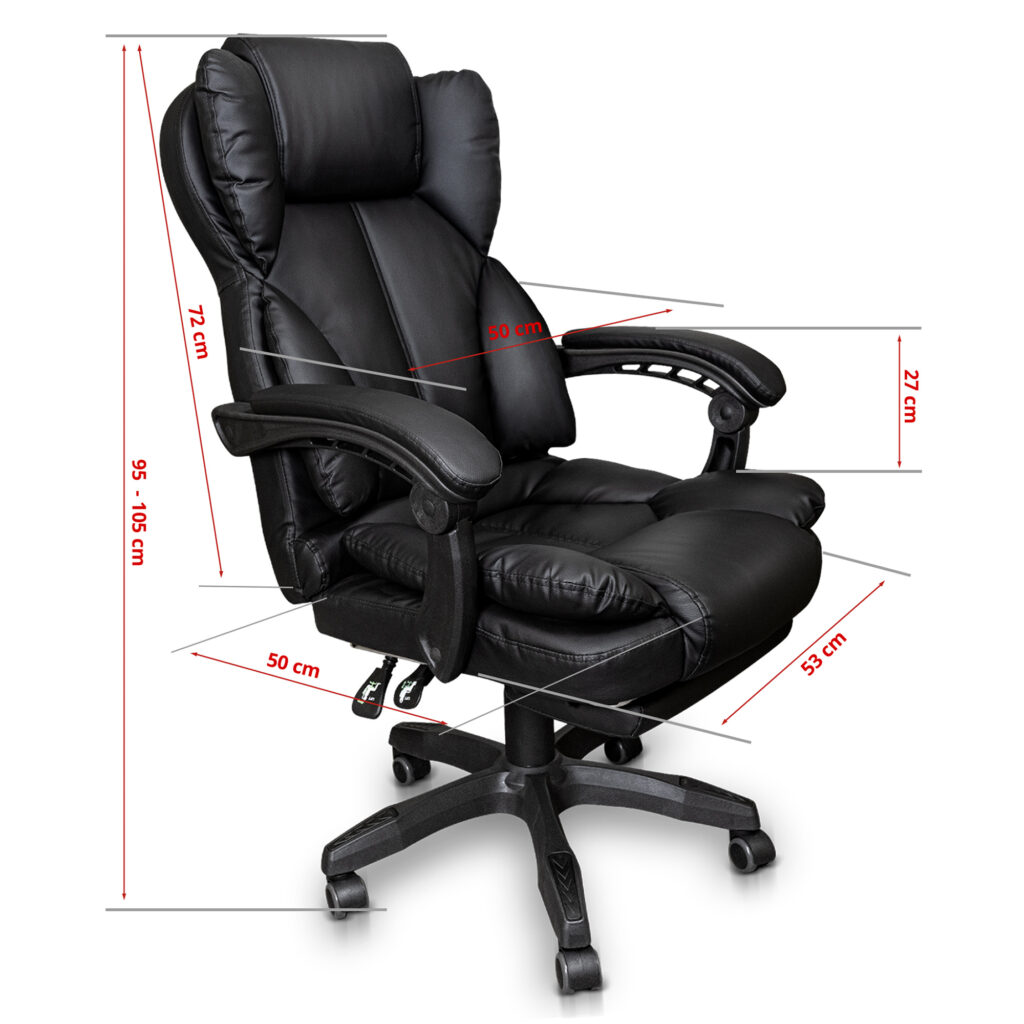 Гнучке крісло керівника з характерним, але елегантним дизайном, що імітує шкіру. Це офісне крісло оснащене м’якими гнучкими триточковими підлокітниками. Його можна встановити розслаблююче положення, а підлокітники адаптуються до цього положення. Для максимального розслаблення м’яку підставку для ніг можна вийняти.