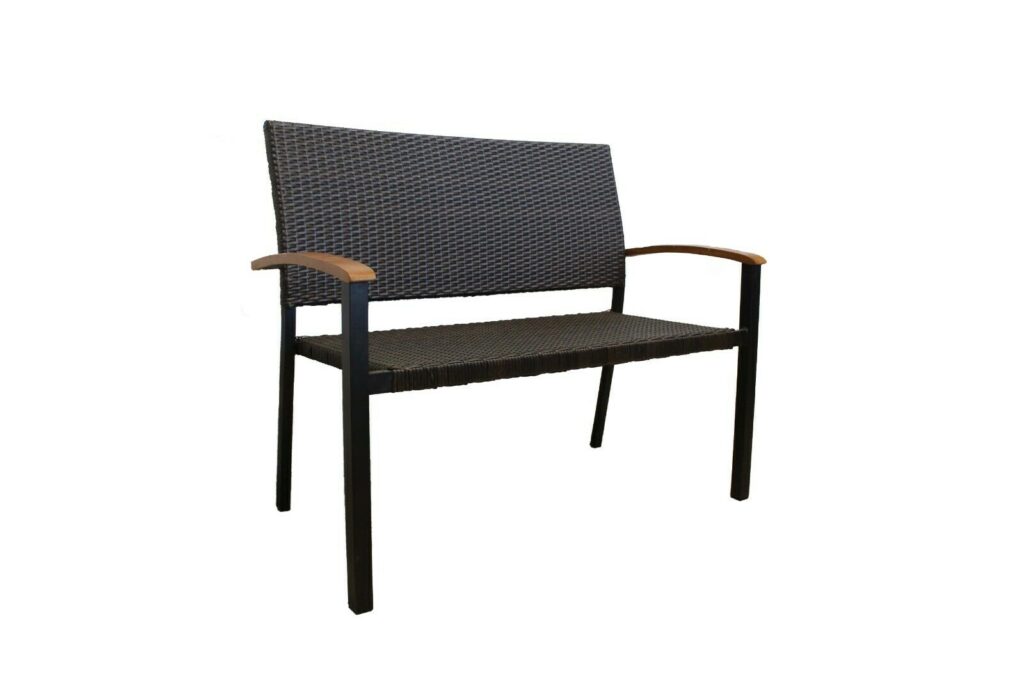 Вона виготовлена зі штучного ротанга – довговічного матеріалу, який стійкий до УФ-променів, перепадів температур і вологості, не деформується при використанні. В основі лавки металевий каркас.
