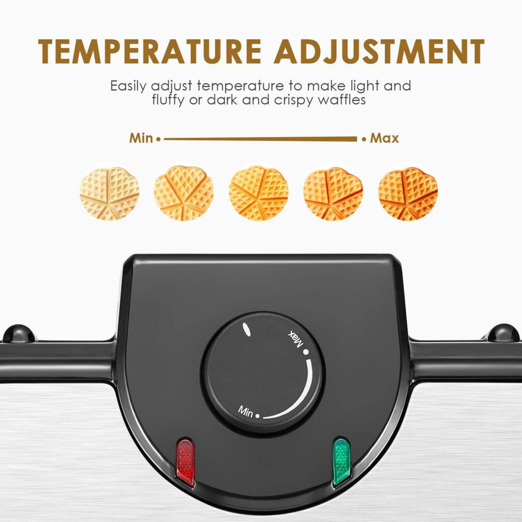Ця вафельниця має антипригарне покриття, що дозволяє легко видаляти забруднення. Завдяки ковзанням ніжок вафельниця завжди залишається на місці. Температуру можна встановити за допомогою контролера. Завдяки потужності 1200 Вт вафельниця дуже швидко нагрівається. Індикатори підкажуть вам, коли він буде готовим.