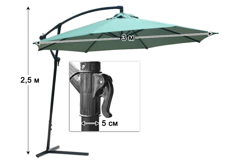 Садова парасолька – це ваш помічник у забезпеченні комфорту в будь-якій зоні відпочинку на відкритому повітрі: біля басейну, на садибі заміського будинку, в саду, на дачі … Його широка купол і спеціальна тканина, що захищає від ультрафіолету, забезпечить вам комфортне перебування на сонечку і вкриє від променів. А зручна ручка регулювання кута нахилу дозволяє ховатися від похилих сонячних променів до самого заходу сонця. Завдяки своєму благородному дизайну, парасолька несе не тільки функціональну користь, а й естетичну – вона вигідно підкреслить екстер’єр вашої ділянки та зробить її більш вишуканою.