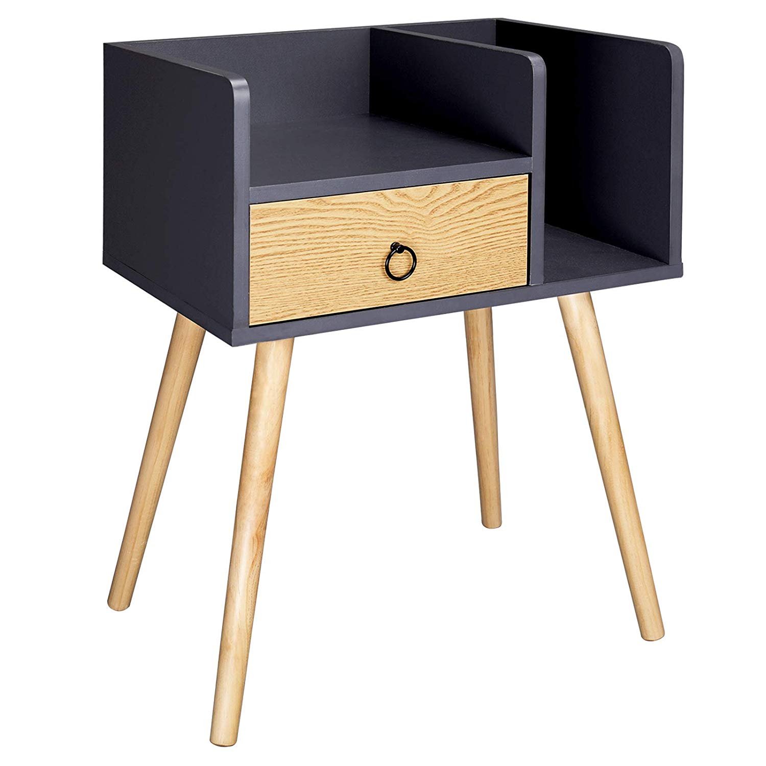 Приліжкова тумба з висувною скринькою з дерева сірого кольору TSR73