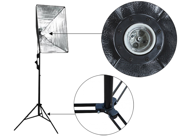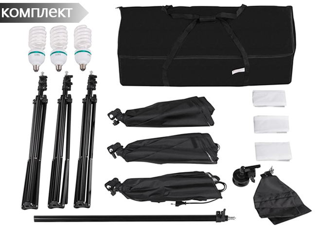 У комплекті поставляється 3 софтбокси та 3 штатива а саме: