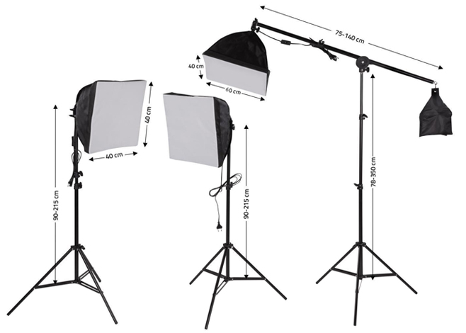 – 2 штатива включаючи 2 софтбокси 40х40 см вертикального освітлення