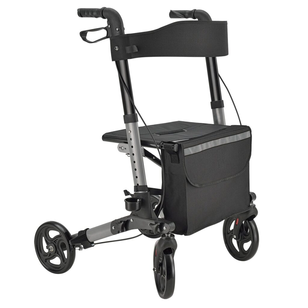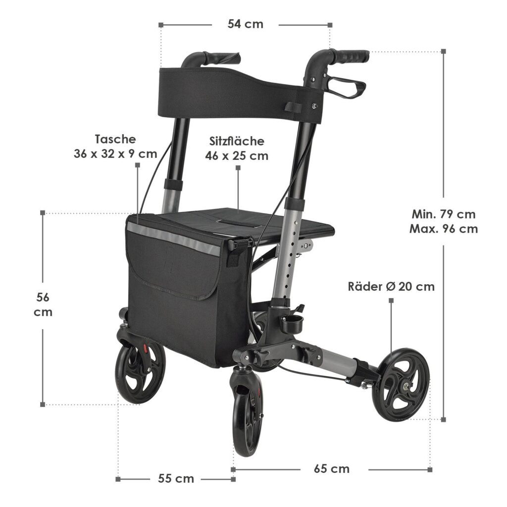 Современный и складной алюминиевый роллатор Vital (Black) пригодится для пожилых людей и взрослых с физическими недостатками во время ходьбы. Независимо от того, идете к врачу, в магазин или парикмахерскую, легкое вспомогательное средство для ходьбы поможет вам или вашим родителям как в помещении, так и на улице. Ощутите себя в безопасности с алюминиевым роллатор и получите больше свободы в повседневной жизни! Кроме того, роллатор с сидением можно быстро установить и сложить, чтобы сэкономить место для транспортировки в автомобиле. В дополнение к съемной сумке есть также держатель для палки или зонта.Надежный и легкий