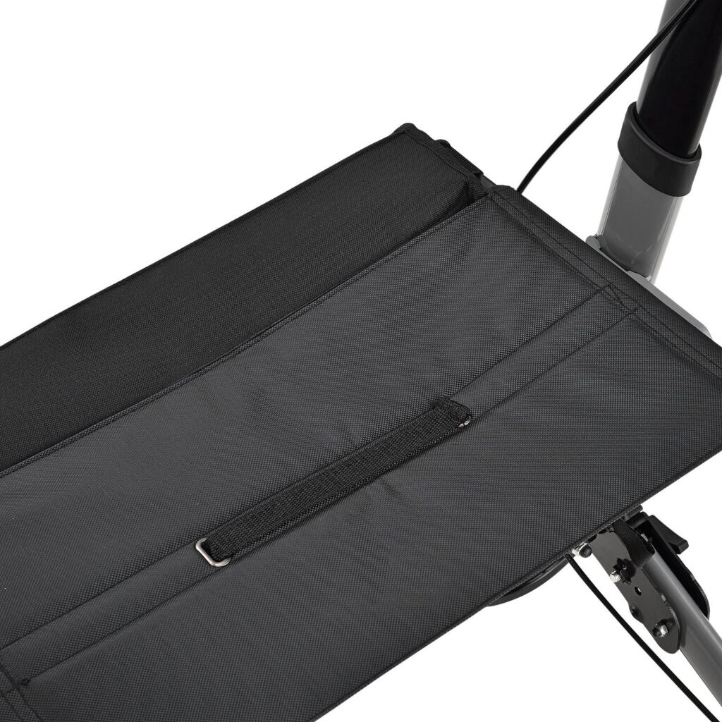 Хотите короткого перерыва? Вы мягко сидите на сиденье размером 46×25 см из крепкой ткани. Задний ремень служит спинкой и обеспечивает дополнительную поддержку. Высота сиденья 56 см означает, что вы удобно сидите и легко встаете.Включает сумку и держатель для трости.