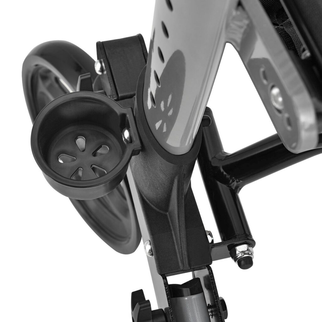 20 см колеса обеспечивают безопасное использование. Тормозные рычаги расположены на двух ручках эргономичной формы. Просто потяните рычаг вверх, чтобы ролик остановился. Функция блокировки предотвращает скат вспомогательного средства для ходьбы во время сидения в автобусе или во время перерыва.Удобное сиденье со спинкой для отдыха