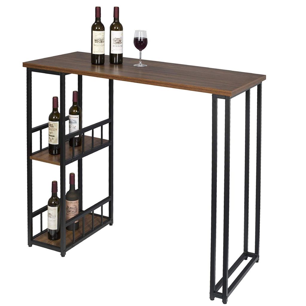 “Барний стіл з двома полицями з металевого каркасу та МДФ BT25 (Коричневий темний)”