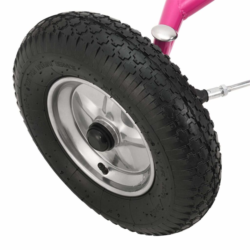 Шины диаметром 38 см со стальными дисками и осью на шарикоподшипниках доставляют огромное удовольствие от вождения. Пневматические шины обеспечивают сцепление с дорогой и поглощают неровности. Ваш ребенок безопасно едет по ровным, сухим поверхностям, таким как асфальт и тротуар. Следует избегать рыхлых почв, таких как гравий, и песок.
