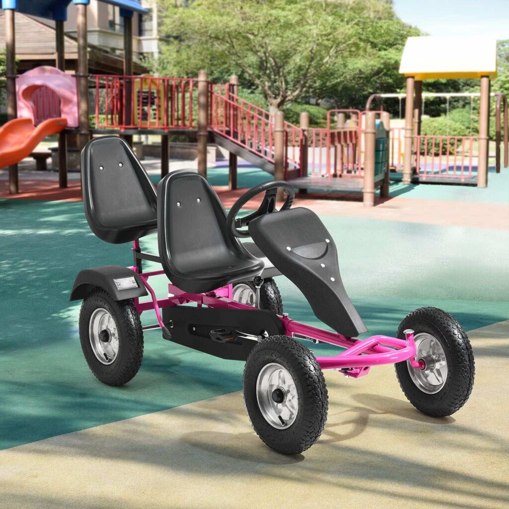 2-местный детский картинг (розовый) с пневматическими шинами – детский автомобиль для максимального удовольствия от вождения!