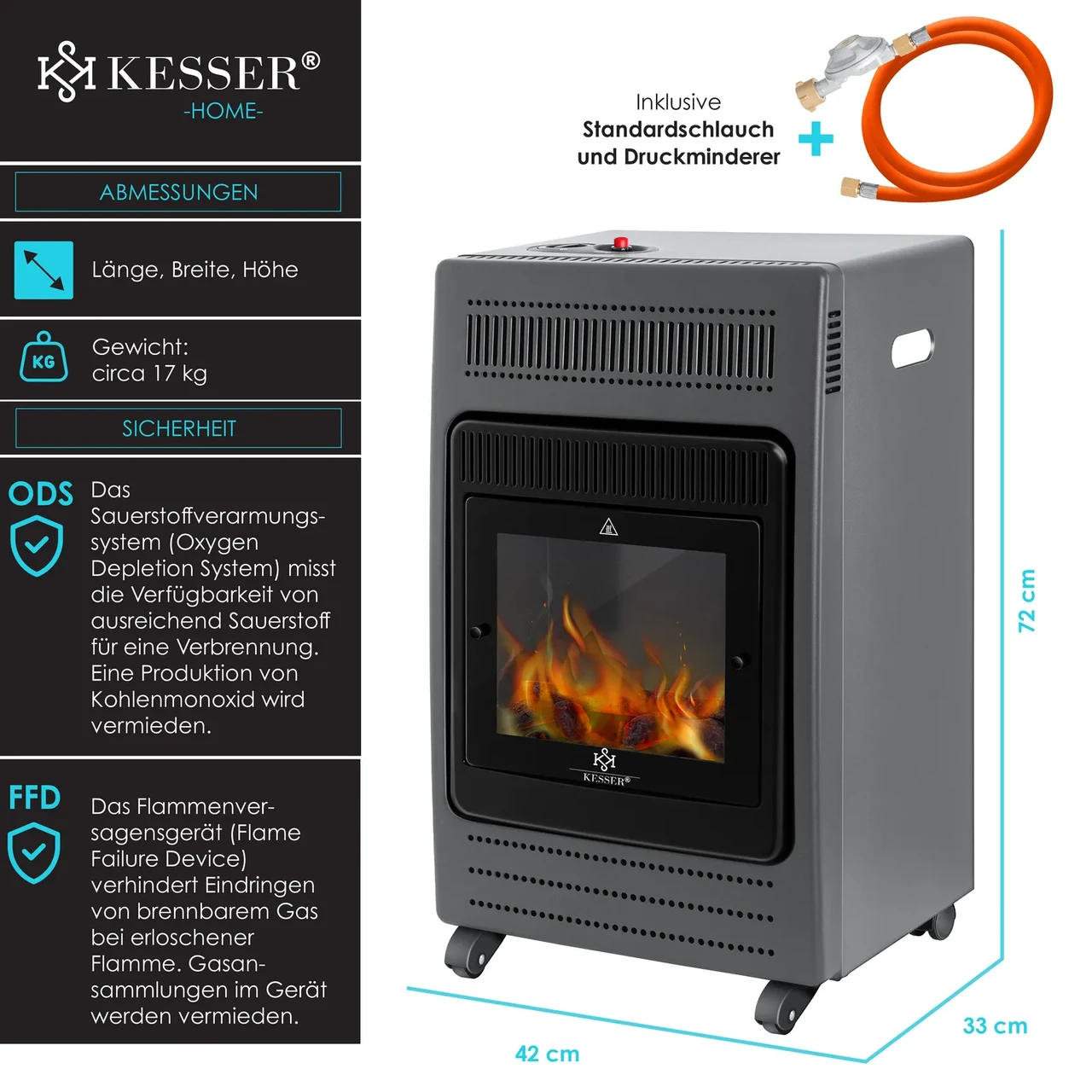 - Газовий камін обігрівач KESSER 72 x 42 x 33 см сірий Німеччина