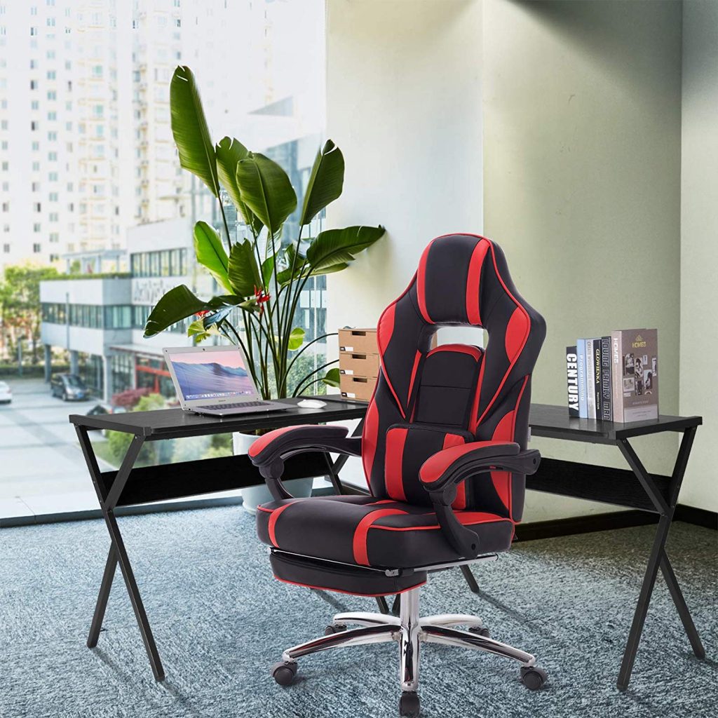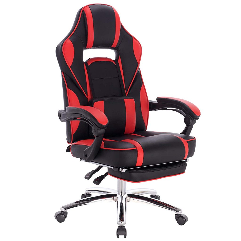 Ігрове крісло зі шкіряними подушками, з підставкою для ніг BS25. У нашій продукції використовуються лише першокласні матеріали, що характеризує якість.