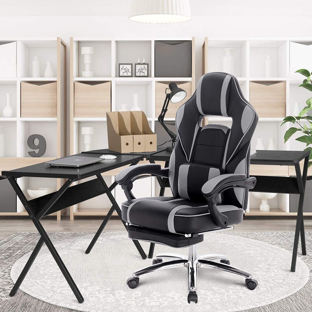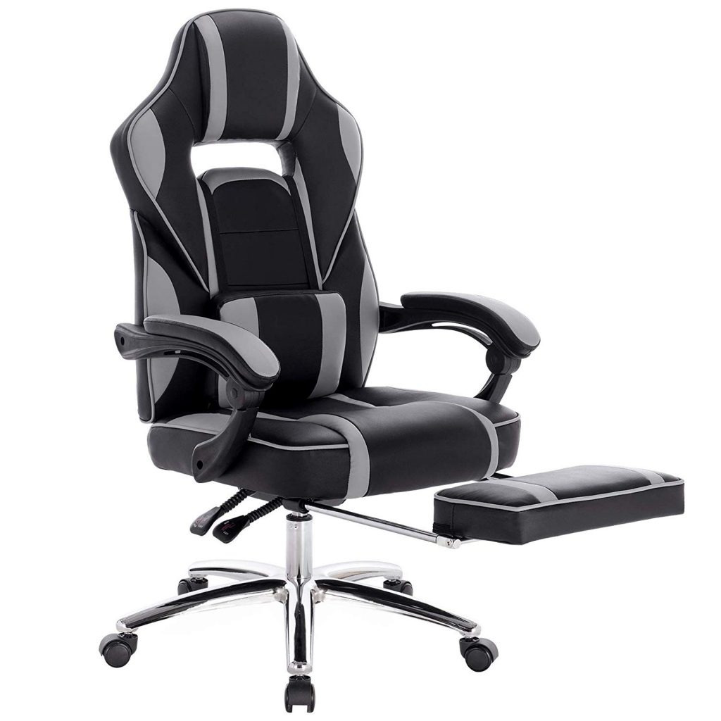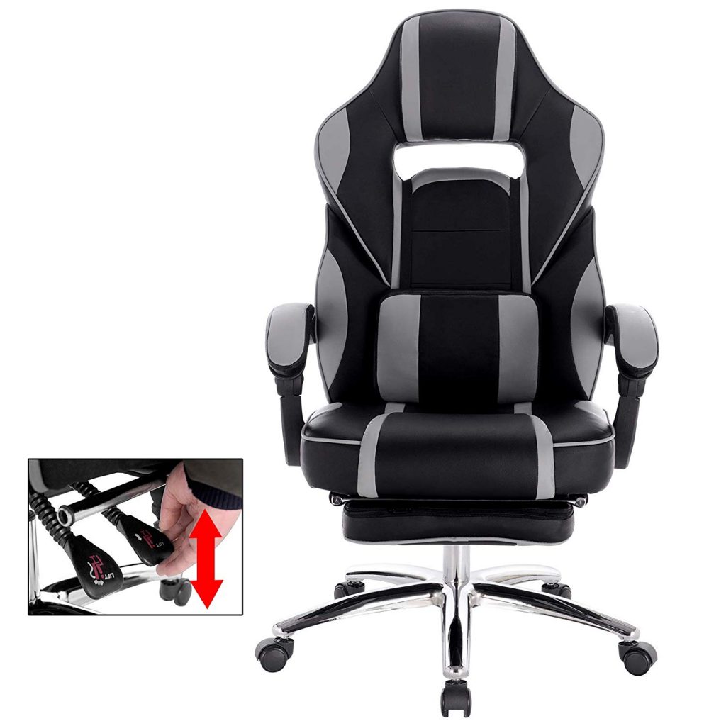 Ігрове крісло зі шкіряними подушками, з підставкою для ніг BS25. У нашій продукції використовуються лише першокласні матеріали, що характеризує якість.