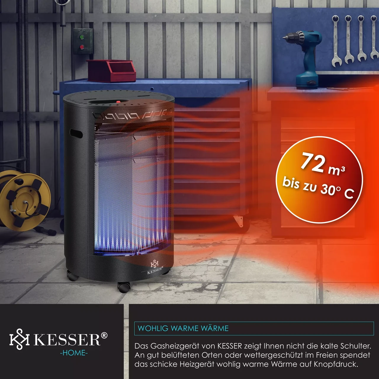 “Інфрачервоний газовий обігрівач KESSER 4200W 41 x 73 x 46см чорний Німеччина”