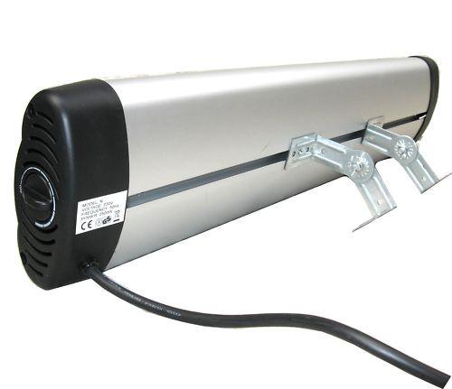 Параметр Значення Живлення 230 В Максимальна потужність 2500 Вт Розміри (Ш×В×Г) 840 × 180 × 85 мм Тип регулювання Безступінчастий термостат Довжина кабелю 2 м (штекер Schuko) Матеріал корпусу Алюміній Висота штатива Від 110 до 175 см Захист GS, захисна решітка Використання Приміщення, гараж, майстерня Тип монтажу Стеля / стіна / штатив