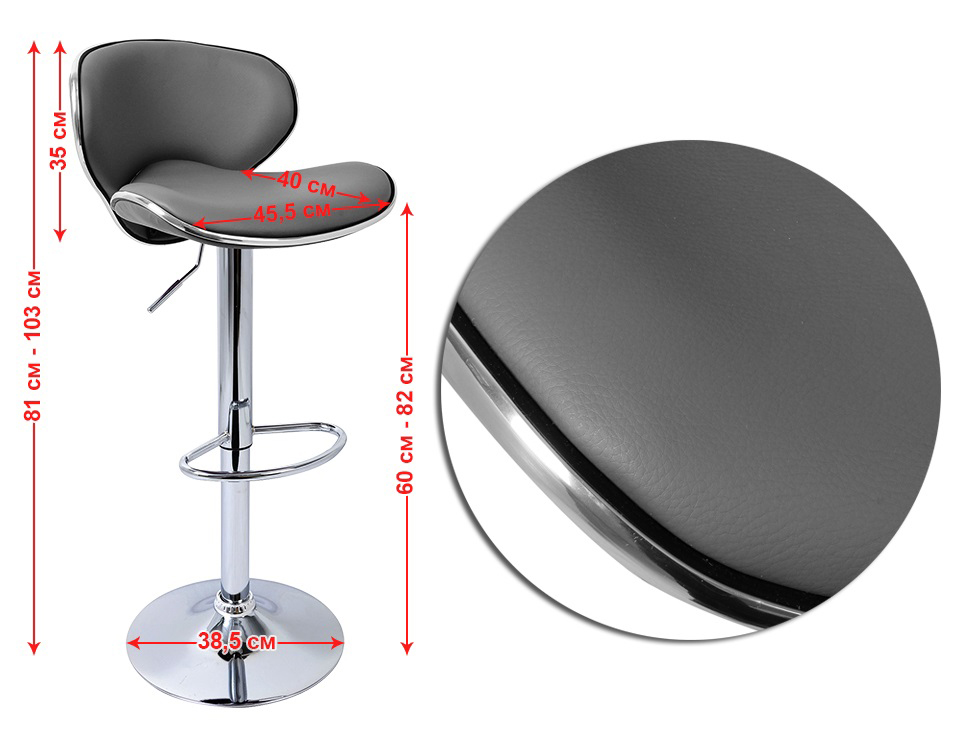 Пропонуємо вашій увазі дуже зручний, стильний, а головне – універсальний стілець, який стане не тільки прекрасним доповненням барної стійки, або робочого місця адміністратора, але і вірним помічником візажиста. Зручна глибока посадка, високий шар м’якої обшивки, обертання на 360® – це лише початкові пункти у переліку переваг цього стільця. Газовий амортизатор дозволяє м’яко і легко регулювати висоту сидіння, оббивка з високоякісного шкірозамінника стійка до стирання та тріщин, що продовжує термін її служби на довгі роки. Гумова накладка на підставі захистить ваше покриття для підлоги від пошкоджень. Стильний лаконічний дизайн стільця дозволяє гармонійно вписуватися в будь-який сучасний інтер’єр.