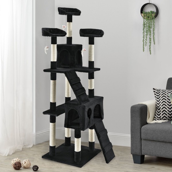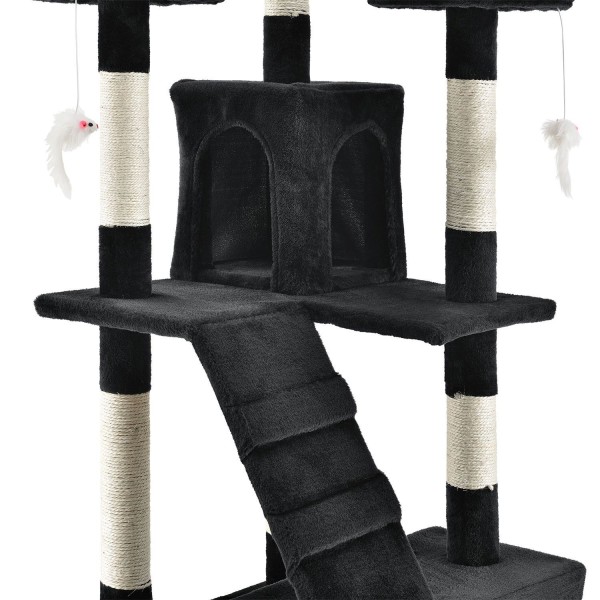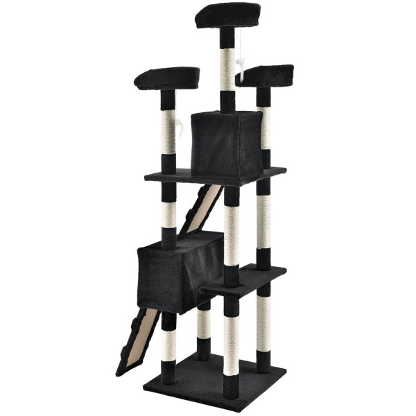 Когтеточка середньої висоти (чорна) змушує котячі серця битися швидше. Він пропонує вашому улюбленому вихованцеві безліч можливостей грати, стрибати, відпочивати та точити кігті. Ваш кіт почуватиметься абсолютно комфортно і із задоволенням усамітниться на котячому дереві. Завдяки компактному дизайну когтеточка висотою 170 см займає мало місця і її можна знайти навіть у невеликих квартирах. Це робить це котяче дерево гідною інвестицією для кожного власника кота.Технічні характеристики: Матеріал: дерево МДФ, плюш, сизаль Колір: чорний Діаметр колон: 7 см Кількість місць для лежання: 3 Кількість печер: 2 Кількість драбин: 2 Кількість мишей: 3 Розміри (прибл.): Загальний зріст: 170 см Розмір основи: 49 х 49 см Печера велика: 50 х 24 х 25 см Печера мала: 24 х 24 х 27 см Діаметр лежачої поверхні: 25 см Обсяг поставки: 1 шт 1 * Інструкція -