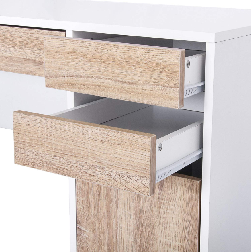 Сучасний письмовий стіл із 3 ящиками та 1 шафою пропонує вам багато місця для зберігання.