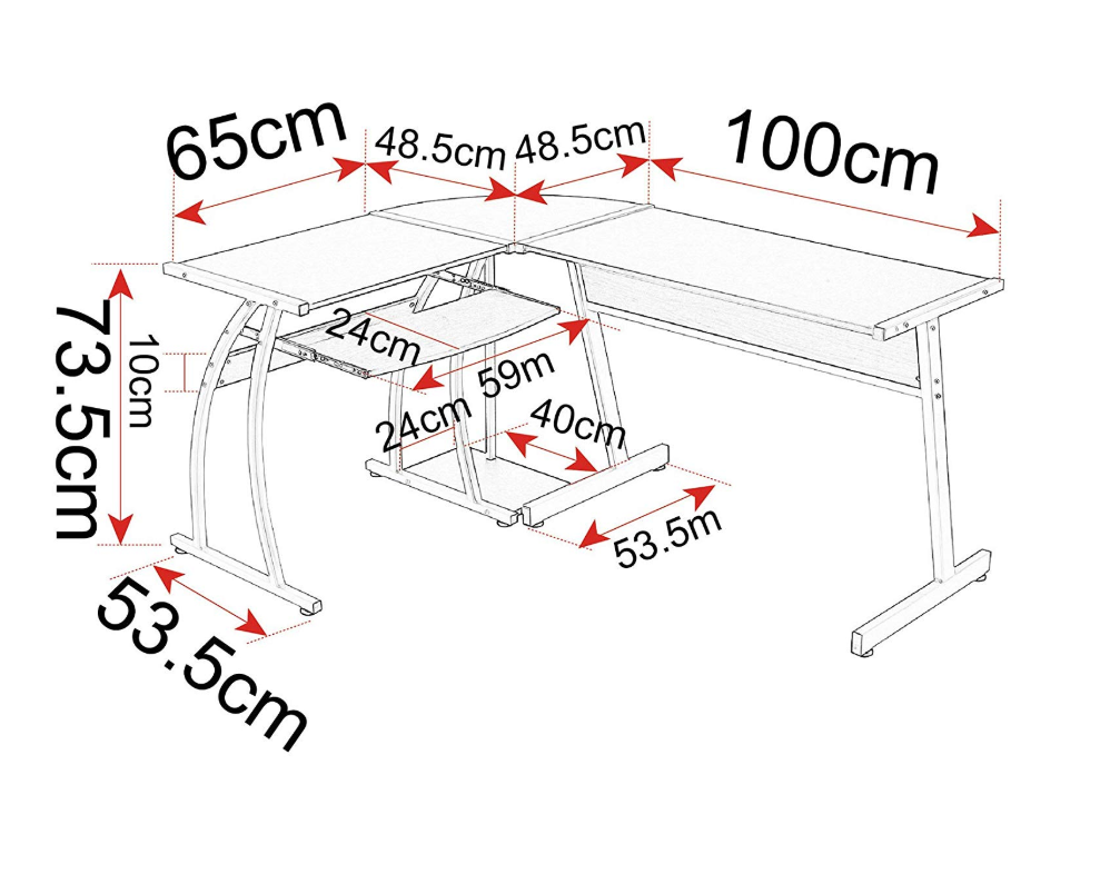 Стільниця: 100×48, 5см і 65×48, 5см (ШхГ)