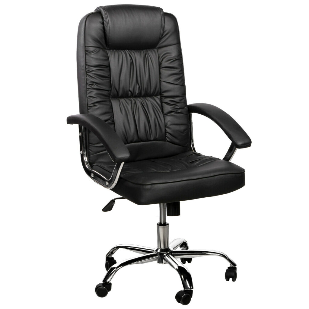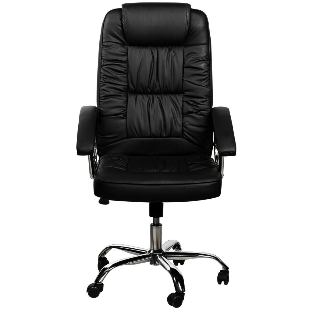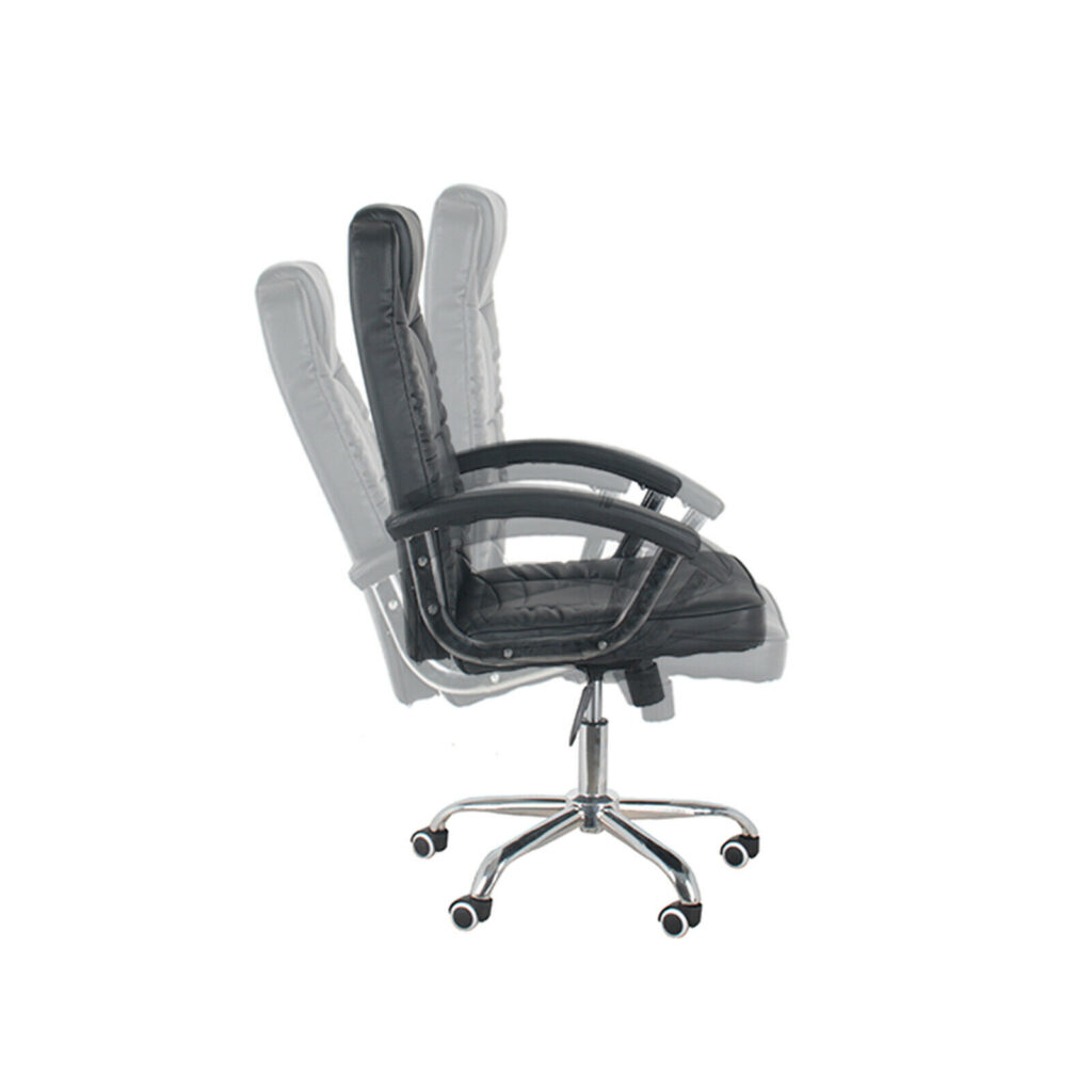Цей офісний стілець елегантного дизайну, що обертається, стане базовим для будь-якого офісу. Крісло, що обертається, регулюється по висоті, має регульований хитний механізм і м’яку, зручну в догляді поверхню із синтетичної шкіри. Область підголівника та область подушки переднього сидіння мають м’яку підкладку для забезпечення зручного сидіння.