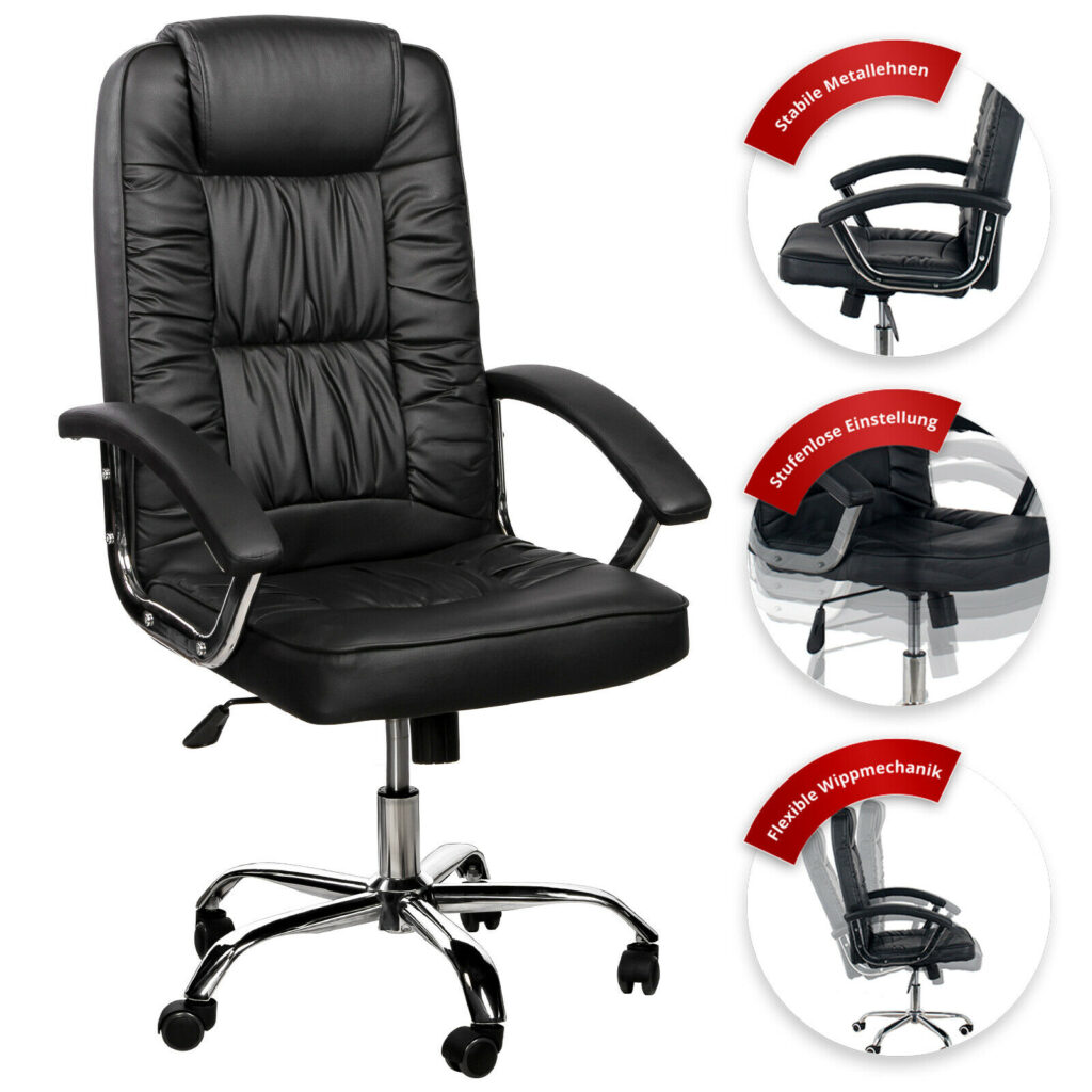 Об’єм поставки: спинка, сидіння, 2 підлокітники, основа з 5 коліщатками, набір інструментів. Крісло, що обертається, регулюється по висоті, має регульований хитний механізм і м’яку, зручну в догляді поверхню із синтетичної шкіри. Область підголівника та область подушки переднього сидіння мають м’яку підкладку для забезпечення зручного сидіння.