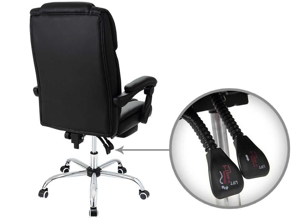 Регулюється за висотою за допомогою механізму газової пружини. Кут нахилу спинки регулюється, його можна повністю розкласти.